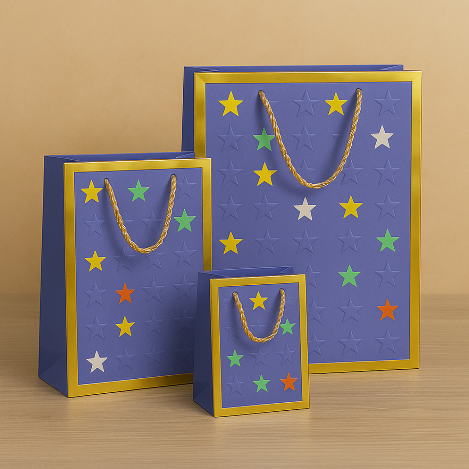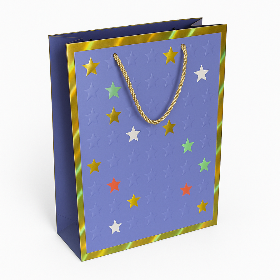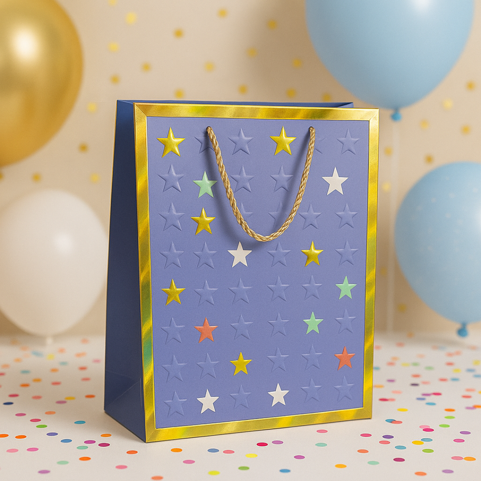 Bolsa de Regalo Personalizada con Estrellas en Relieve Coloridas, Bolsa de Papel de Lujo con Asas de Cuerda para Fiestas, Cumpleaños y Celebraciones