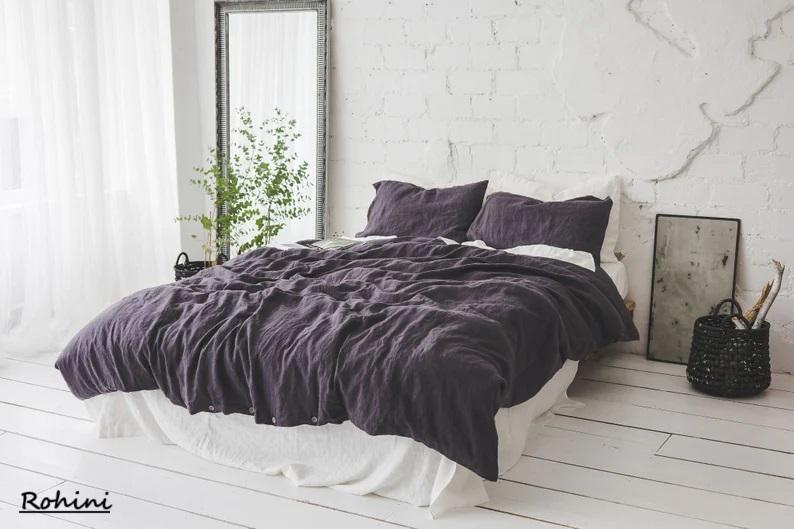 Juego de funda nórdica de lino tamaño Queen de 3 piezas de colores personalizados uso doméstico y hotelero de alta calidad Lino lavado suave 200TC para todas las estaciones
