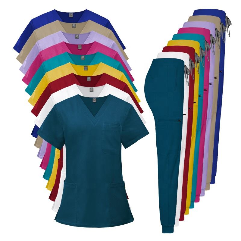 Colores personalizados Unisex Reutilizable Multi-Color Hospital Scrubs Sets Uniformes de enfermera con logotipo tejido impreso Directo de suministro de fábrica