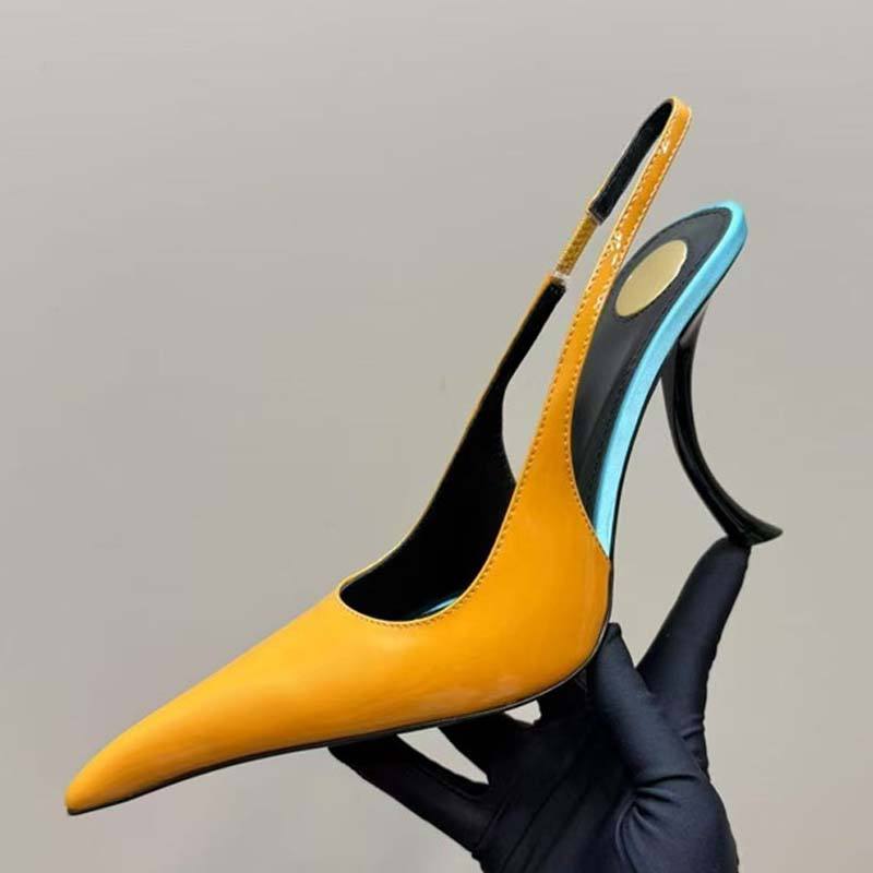 Zapatos de tacón de aguja con correa trasera y punta en pico para mujer, con colores personalizados, tacones originales y charol brillante