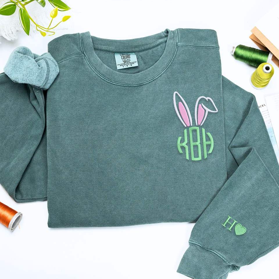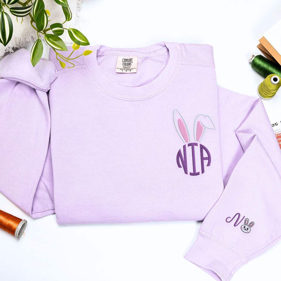 Sudadera con capucha de mujer de regalo de Pascua bordada con orejas de conejo con monograma de Color cómodo personalizado logotipo frontal para invierno otoño
