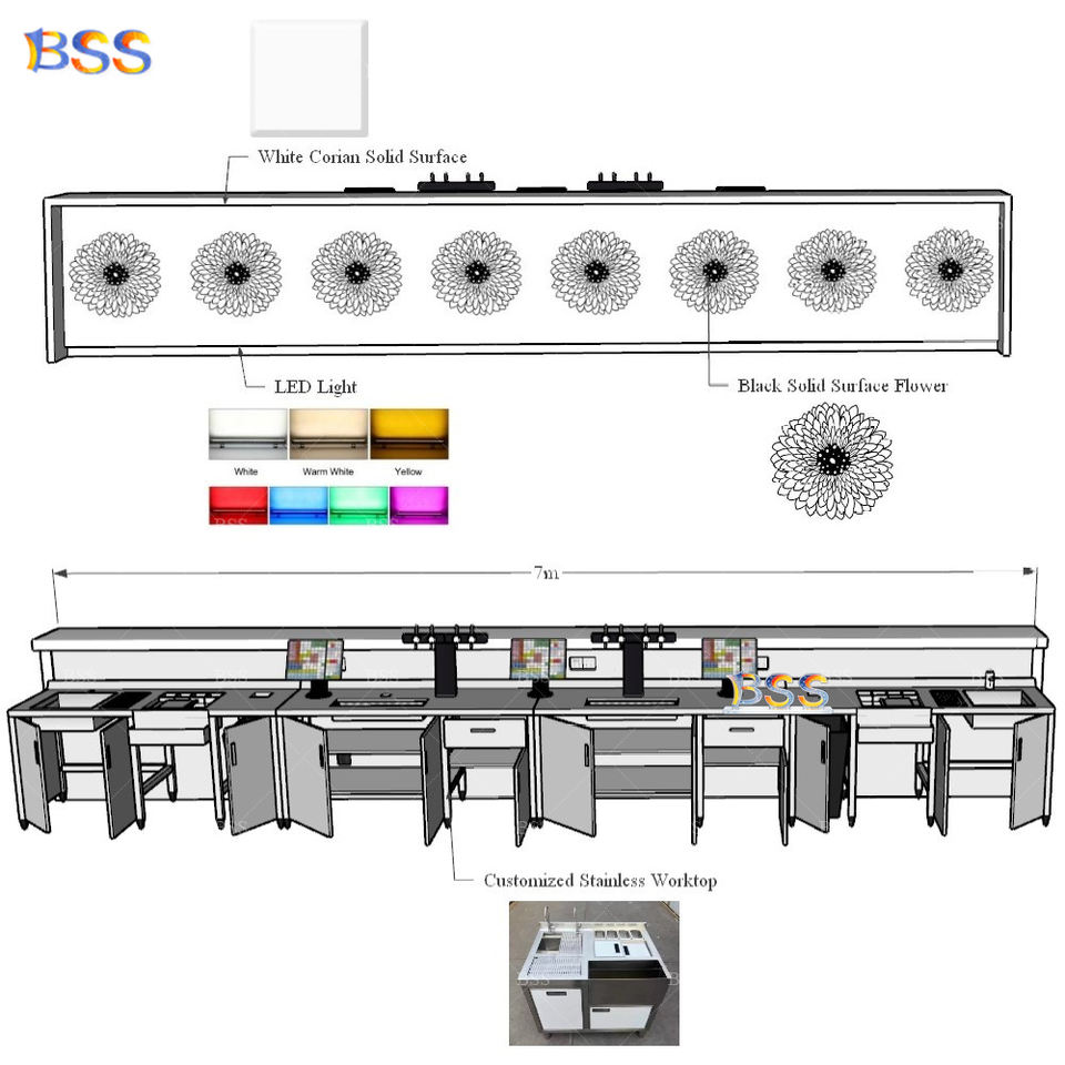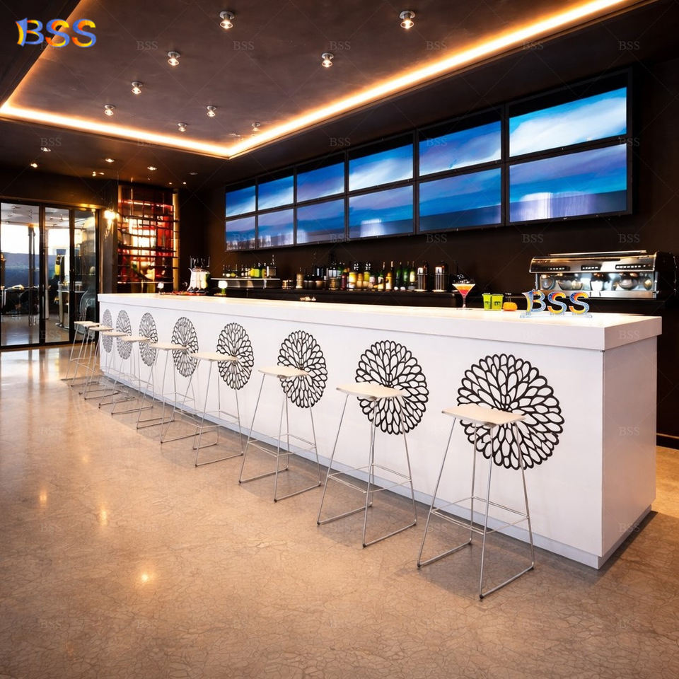 Diseño de Barra Comercial Personalizada para Restaurante de Lujo, Barra de Servicio de Alta Calidad en Piedra Acrílica para Cafetería Deportiva y Billar