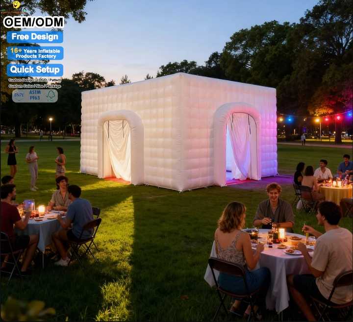 Carpa Cubo LED Inflable Grande, Comercial, Portátil, Impermeable, Resistente al Viento y al Sol, con Ventilador Incorporado, Fácil de Instalar, para Fiestas