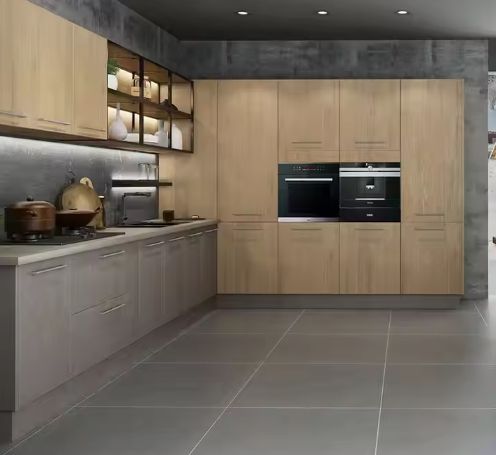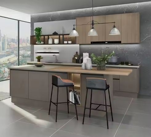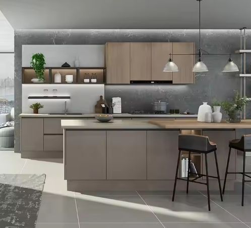 Muebles de Cocina Modernos Completos Personalizados, Estructura de MDF, Puerta de Vidrio Lacado, Incluye Grifo y Accesorios para Casas y Villas