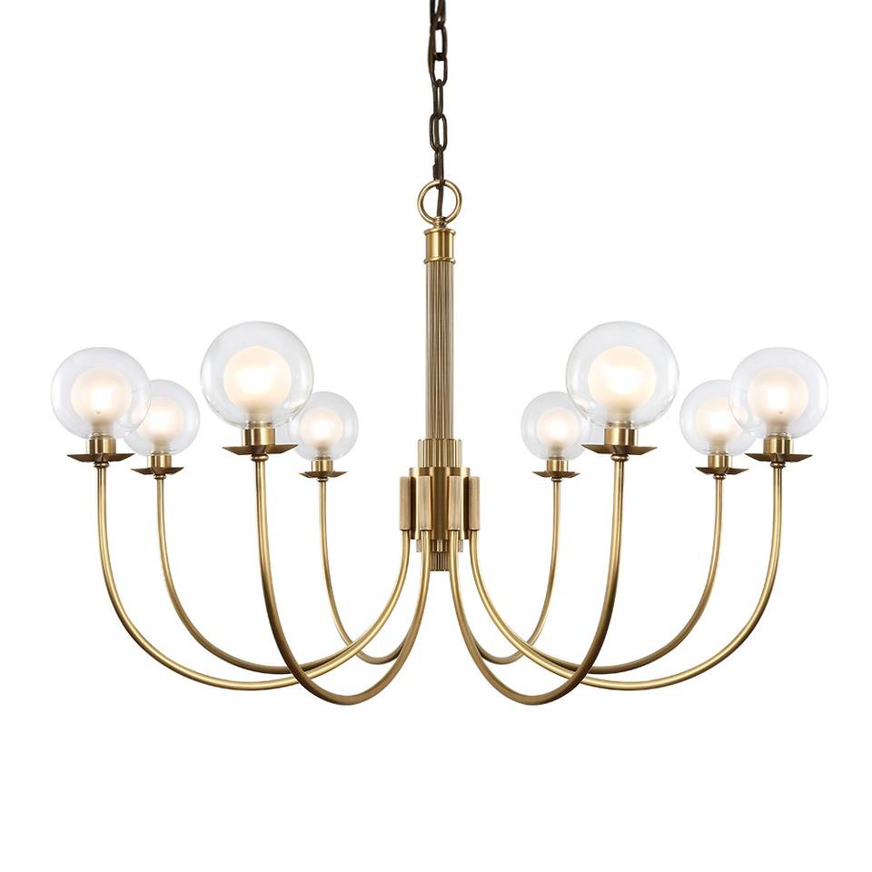Lámpara de araña decorativa de diseño personalizado en cobre con 8 bolas de vidrio redondas, minimalista, con iluminación LED.