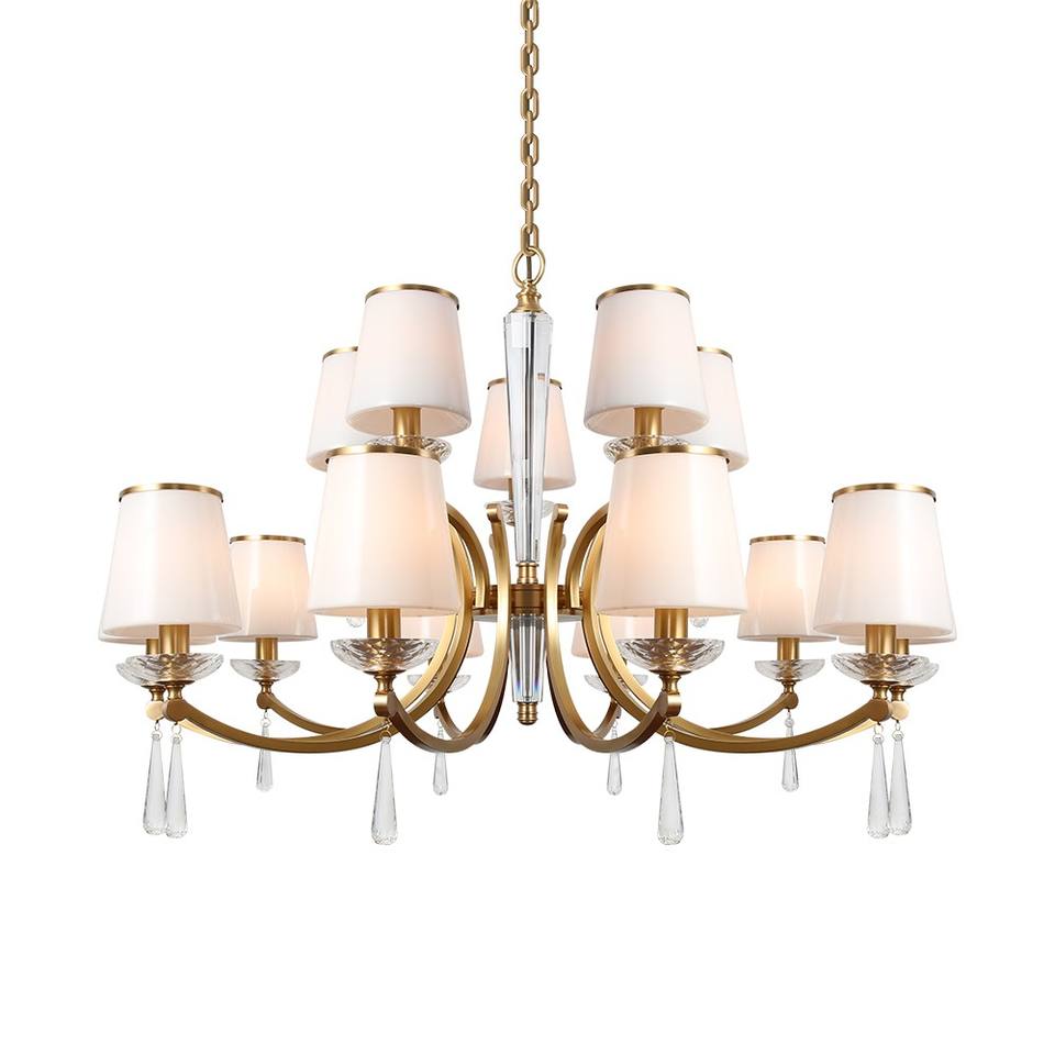 Lámpara de araña moderna de latón de lujo ligero con pantalla de cristal blanco y varillas, precio de fábrica, para comedor y sala de estar