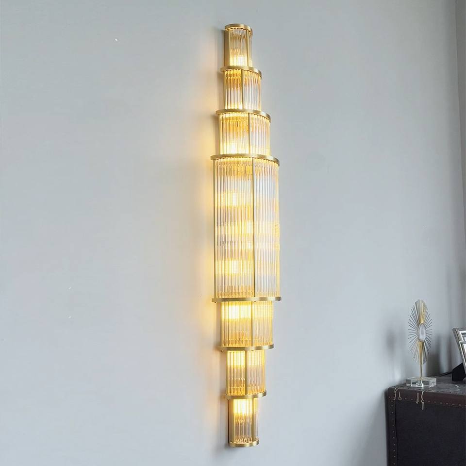 Lámpara de Pared de Cristal de Estilo Moderno y Lujoso, Personalizada en Cobre, para Vestíbulo de Hotel, Villa, Sala de Estar, Oficina de Ventas