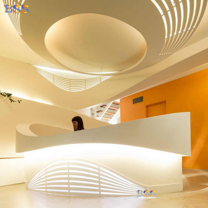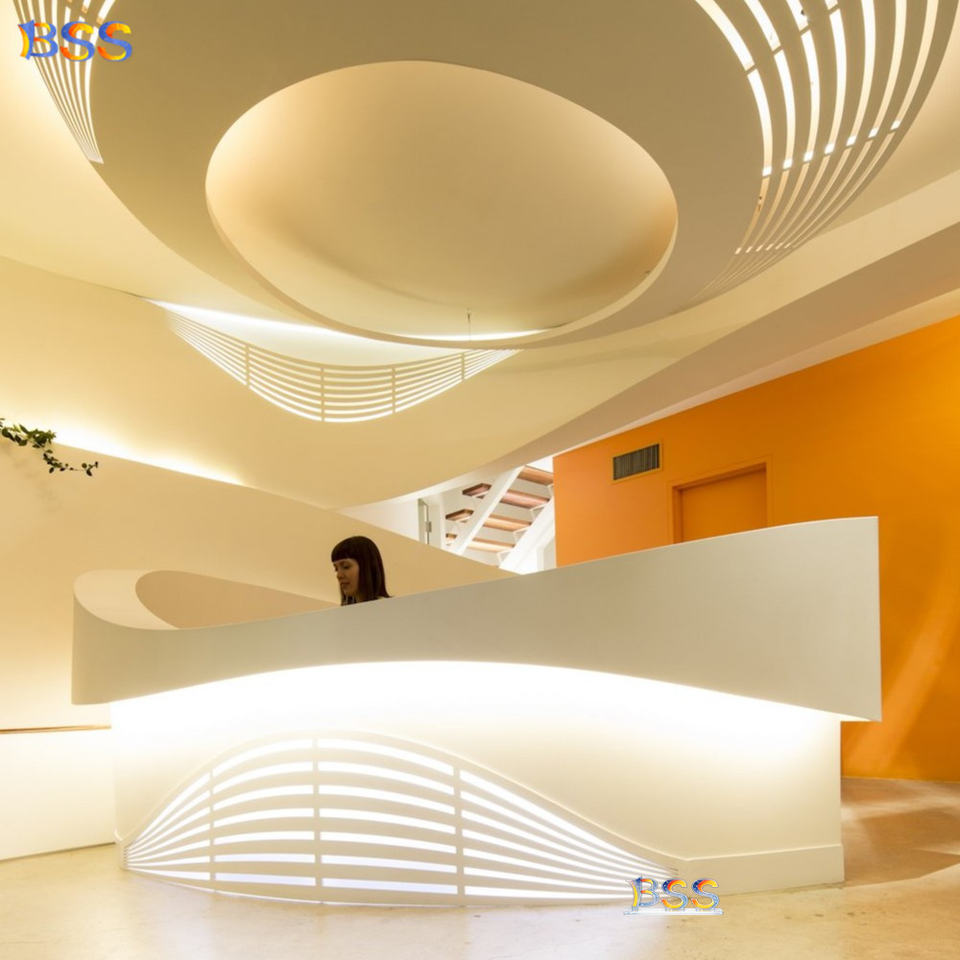 Mostrador de recepcionista médico de Corian personalizado, mostrador de información hospitalaria de diseño moderno, mostrador de recepción de clínica Dental único