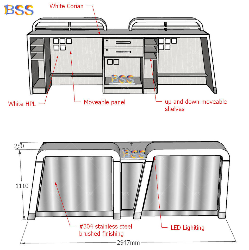 Nombre:Mostrador de Recepción Personalizado de Corian Inoxidable, Moderno Mostrador de Información para Aeropuertos