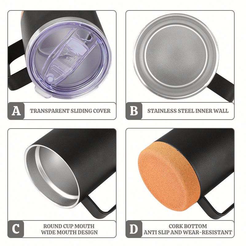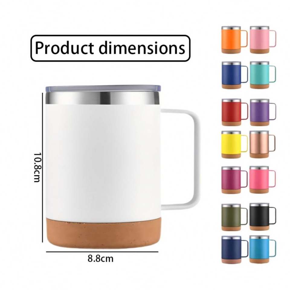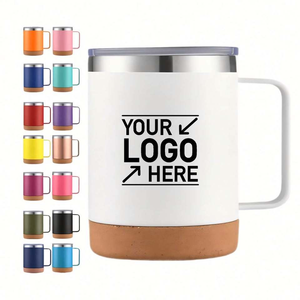Taza de Café Personalizada con Base de Corcho, Recubrimiento en Polvo Mate, 12 oz, Doble Pared, Aislamiento al Vacío, Base de Corcho, Taza de Acero Inoxidable con Asa