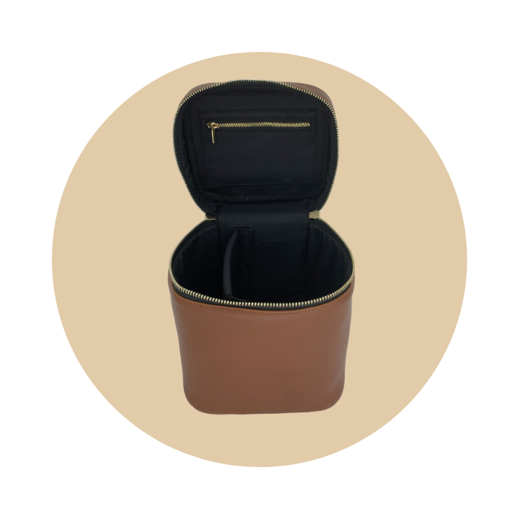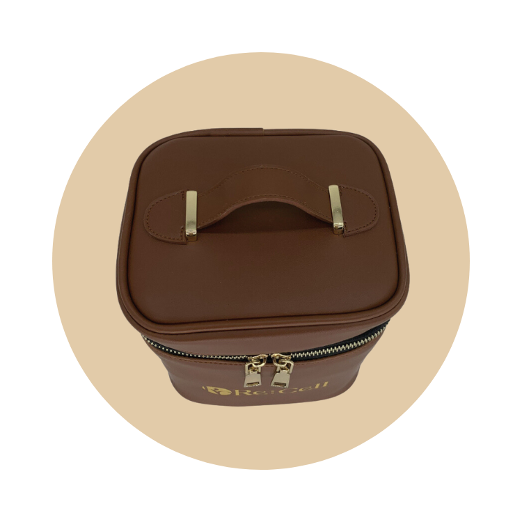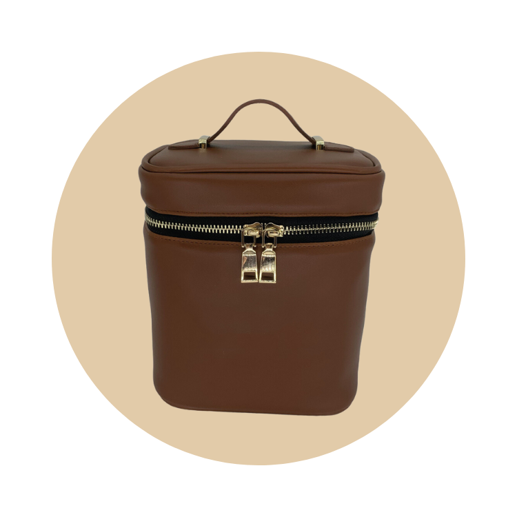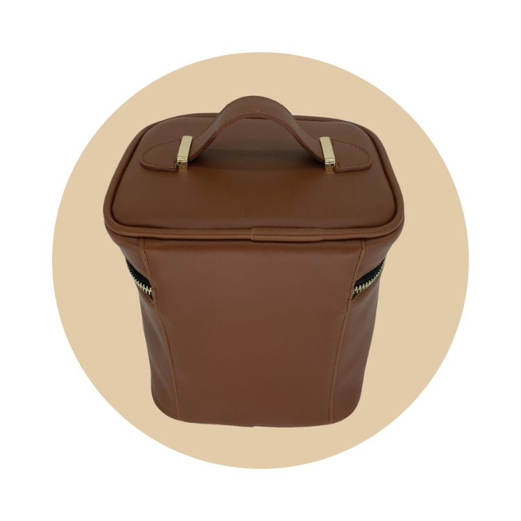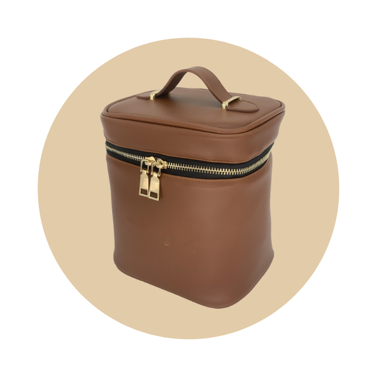 Bolsa de cosméticos personalizada con logotipo personalizado marrón claro PU Material maquillaje bolsas de cosméticos con cremallera