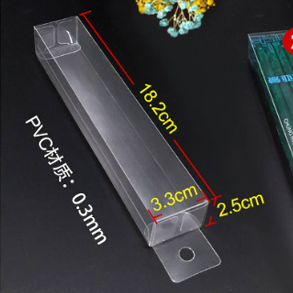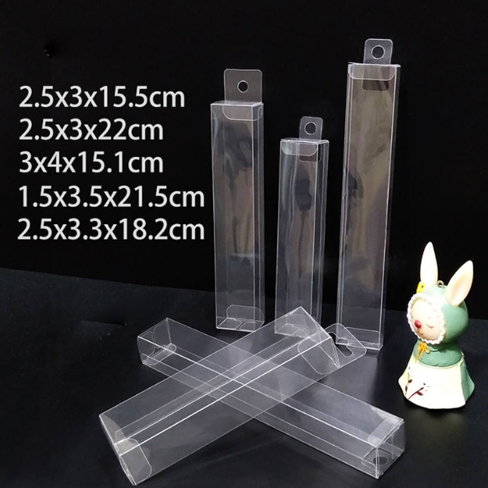 Cosméticos personalizados lápiz ventilador cepillo de dientes cepillo de maquillaje ceja cuchillo palillo vinilo PVC PET pequeñas cajas de plástico largas con percha