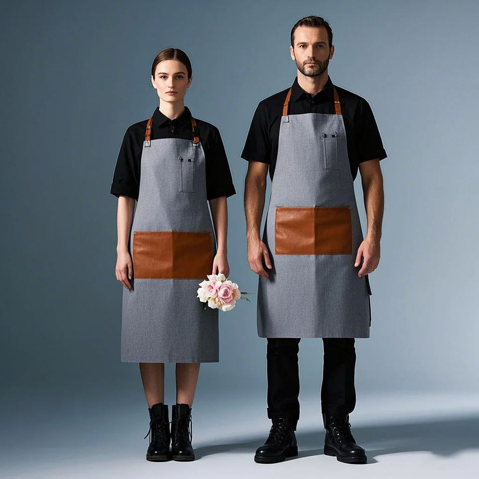Algodón personalizado 2 bolsillos Chef cocina restaurante servidor Delantales para Mujeres Hombres