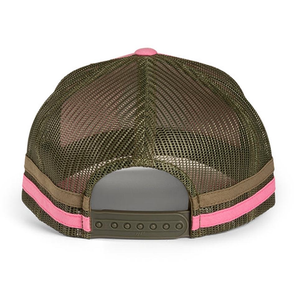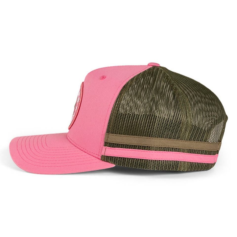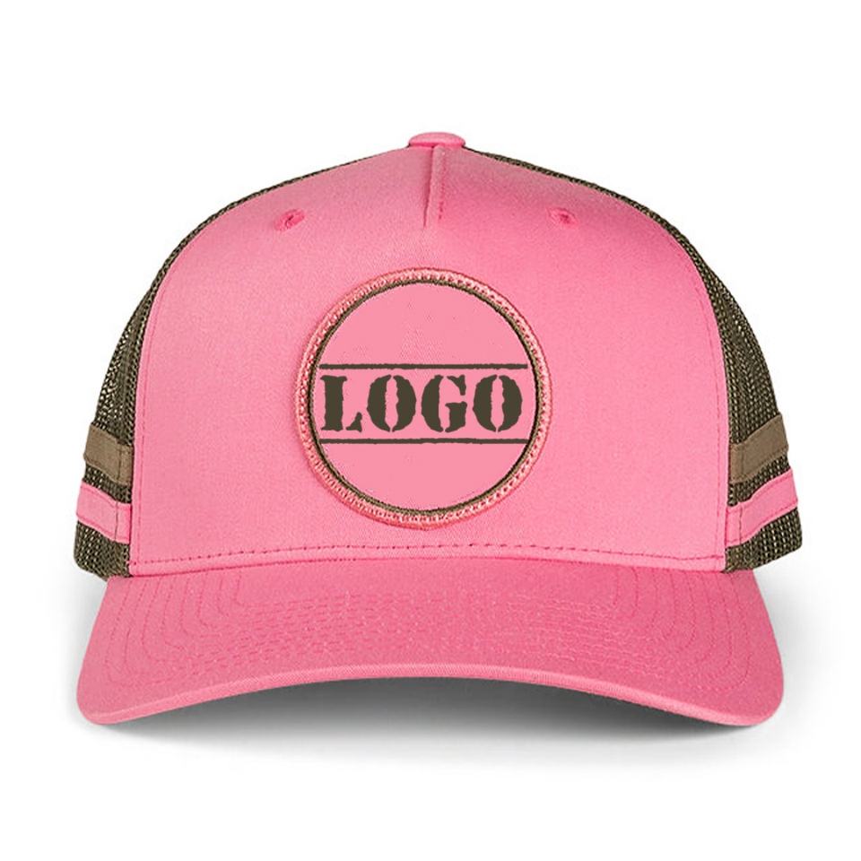 Gorras Trucker Personalizadas de Algodón de 5 Paneles con Parche Bordado Rosa, Gorras con Malla en la Parte Trasera y Rayas
