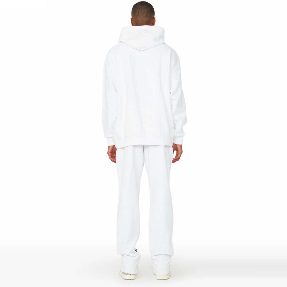 Sudaderas con capucha de algodón con dobladillo crudo y pantalones de chándal apilados acampanados, conjunto de chándal de dos piezas, chándal Unisex para hombre