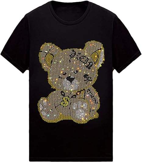 Camiseta de Manga Corta de Algodón Personalizada para Hombre, Talla Grande, Hombros Caídos, con Diamantes de Imitación Blancos, Diseño Personalizable