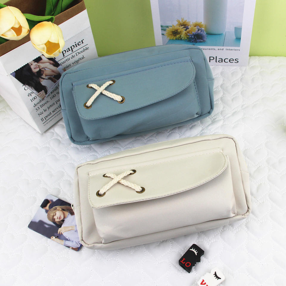 Caja de lápices de cuerda de cáñamo crema personalizada fabricantes estuche de lápices estilo Instagram para niños