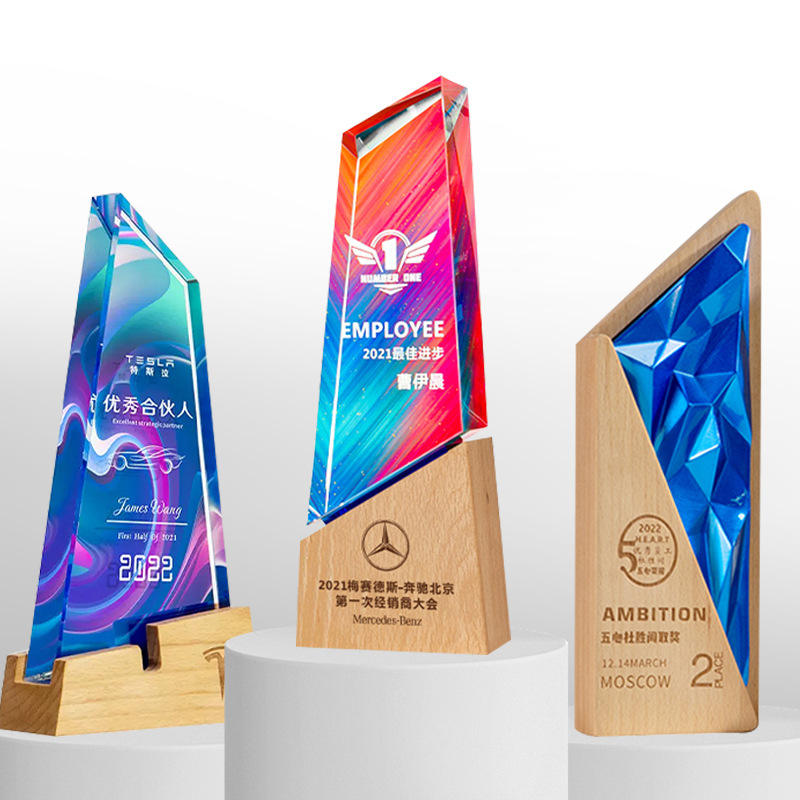 Trofeo de madera de hoja dorada creativa personalizada Placa de premio de madera con patrón de modelo para regalo de presentación honoraria