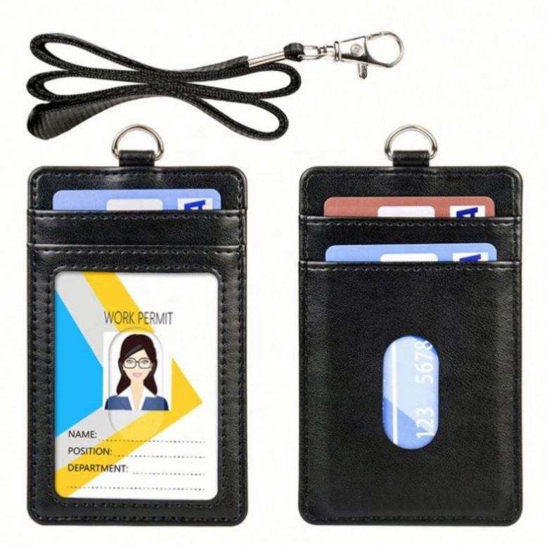 Porta Tarjetas de Crédito Personalizado con Ranura para Tarjetas, de Cuero PU, con Cordón para Cuello y Porta Identificación