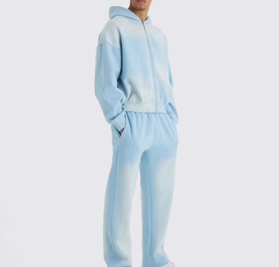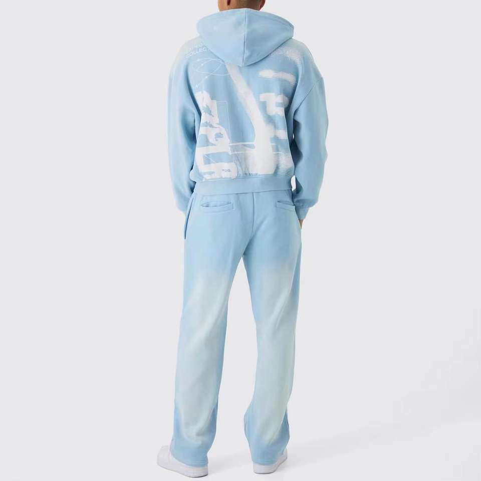 Conjunto de Sudadera con Capucha y Pantalones Deportivos para Mujer, Personalizado, con Cremallera, Lavado Ácido, Parche Bordado y Efecto Desgastado