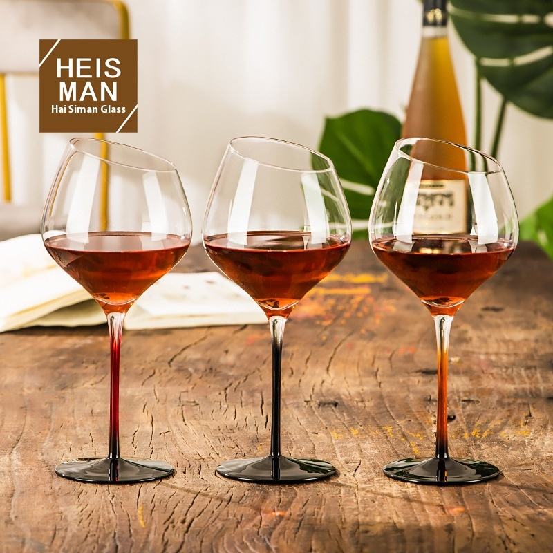 Copa de Vino Tinto Inclinada de Cristal Personalizada de 500 ml, Juego de 2 Sostenibles, Decantación Rápida, Diseño Moderno, Regalo de Boda para Restaurante de Alta Gama