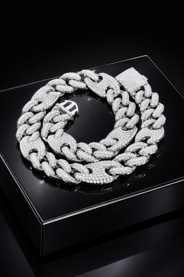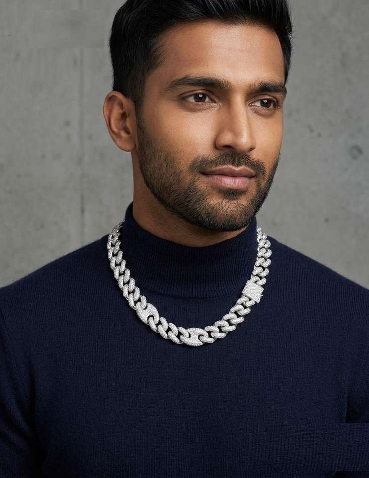 Cadena Cubana Personalizada de Plata de Ley con Moissanita o Diamante de Laboratorio, Collar de Lujo con Diamantes de Laboratorio en Oro de 10K y 14K