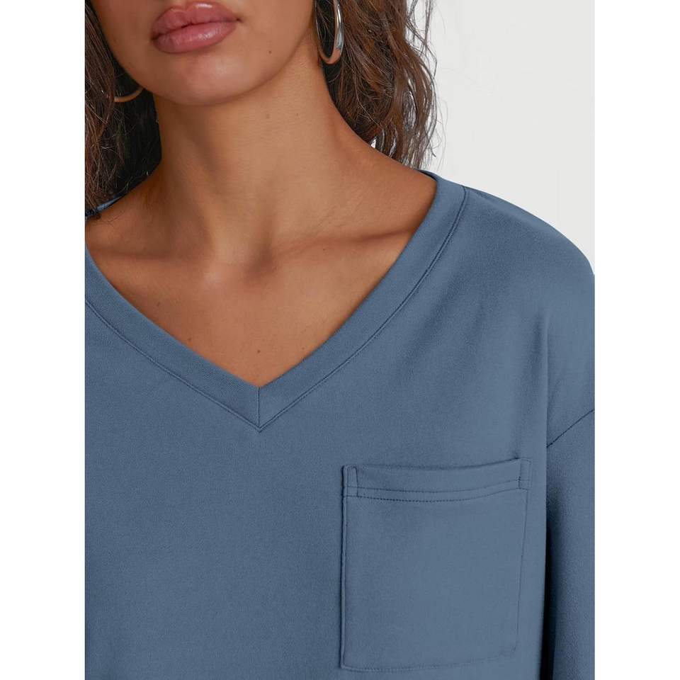 Camisas Casuales de Manga Larga para Mujer, Cuello en V, Ropa de Moda Otoñal, Bolsillo, Talla XL, Holgadas, para Uso en la Oficina