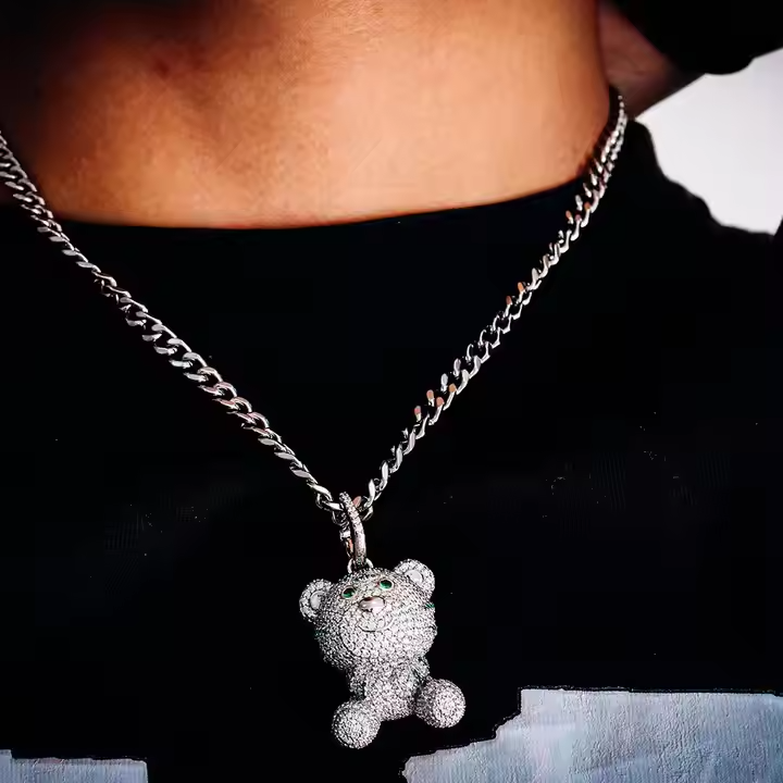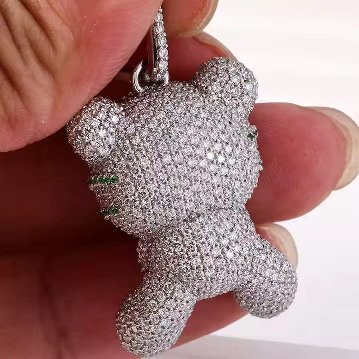 Colgante y Dije de Moissanita con Diseño de Tigre de Dibujos Animados, Estilo Hip Hop, Personalizado y Adorable, de Plata 925, Accesorio de Moda