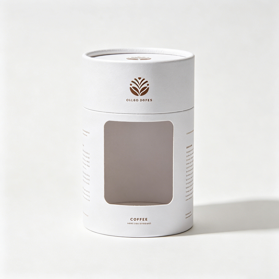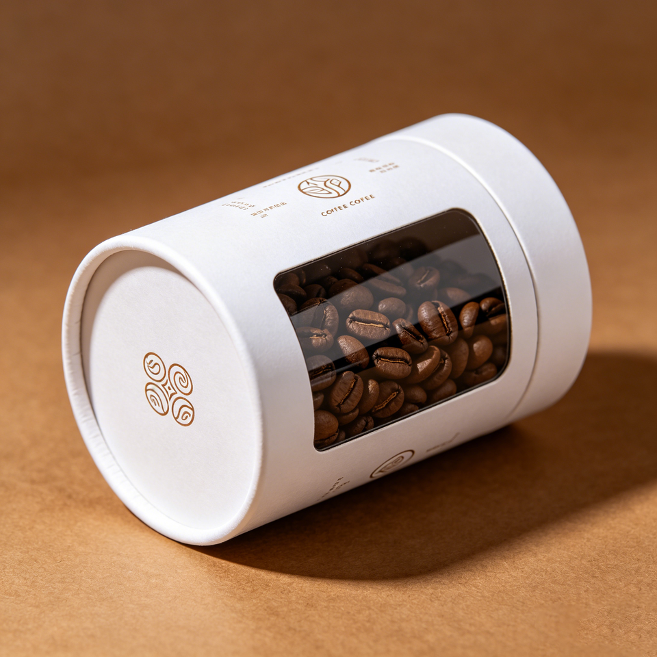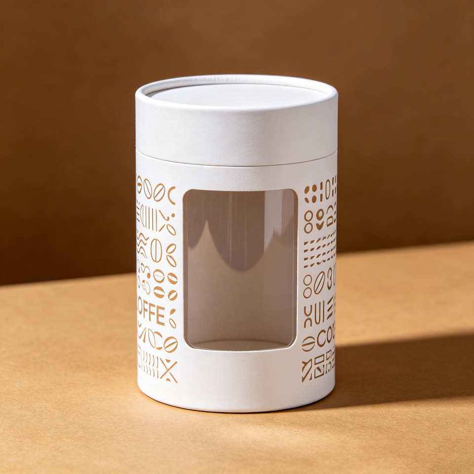 Caja de papel cilíndrica personalizada con ventana transparente, tubo de kraft para granos de café, empaque con logo personalizado, exhibición para regalos de cafetería y venta al por menor.