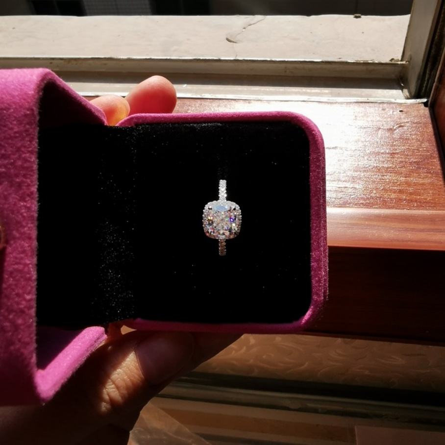 Nombre:Anillo de Joyería Fina en Oro Macizo de 18K con Moissanita Corte Cushion de 2CT y Halo