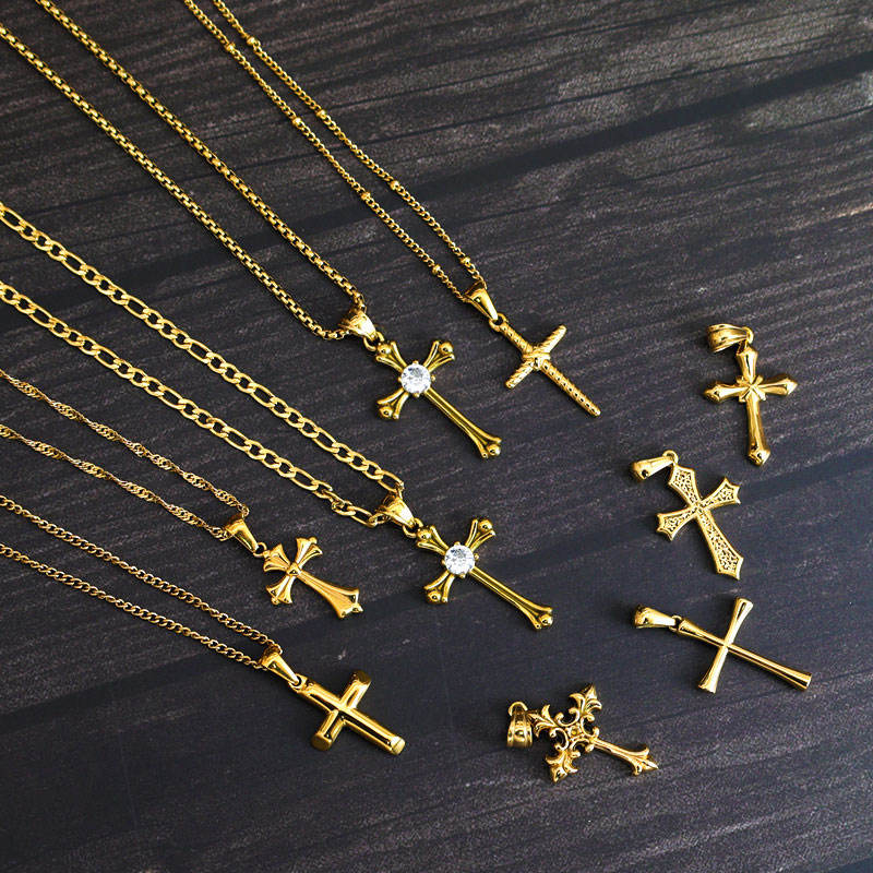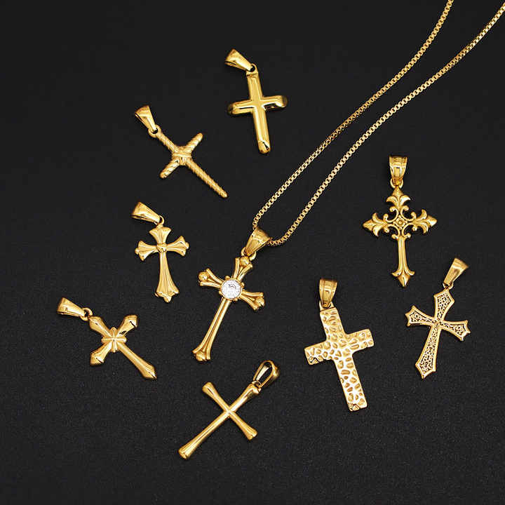 Colgantes de Cruz Vintage de Acero Inoxidable 316L con Baño de Oro de 14k y 18k, Resistentes al Deslustre, para Fabricación de Joyas, Collares y Pulseras