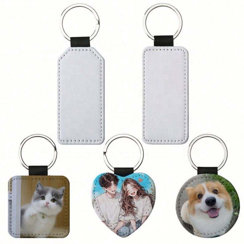 Llavero Personalizado para Sublimación, Llavero de Doble Cara con Impresión por Transferencia de Calor, Llavero de Cuero PU para Sublimación de Doble Cara