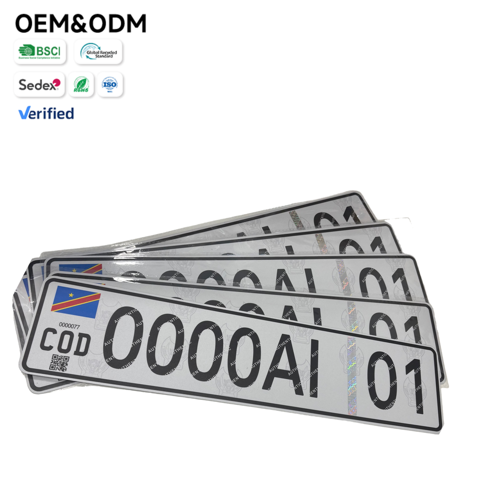 Placa de Matrícula Reflectante Personalizada DRC, Muestra Gratuita, MOQ Bajo para Placas de Matrícula Personalizadas del Gobierno