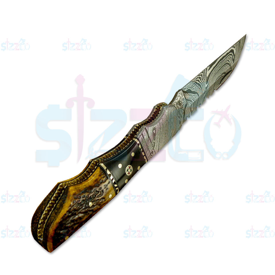 Nombre del producto:HERMOSO CUSTOM HECHO A MANO DE ACERO DE DAMASCO CUCHILLO DE BOLSILLO PLEGABLE