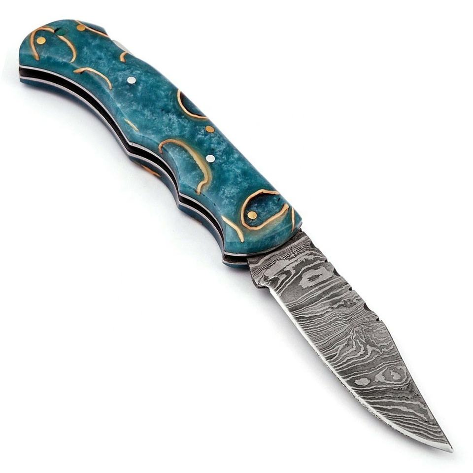 Nombre del producto:CUCHILLO PLEGABLE HERMOSO CUSTOM HECHO A MANO DE ACERO DE DAMASCO
