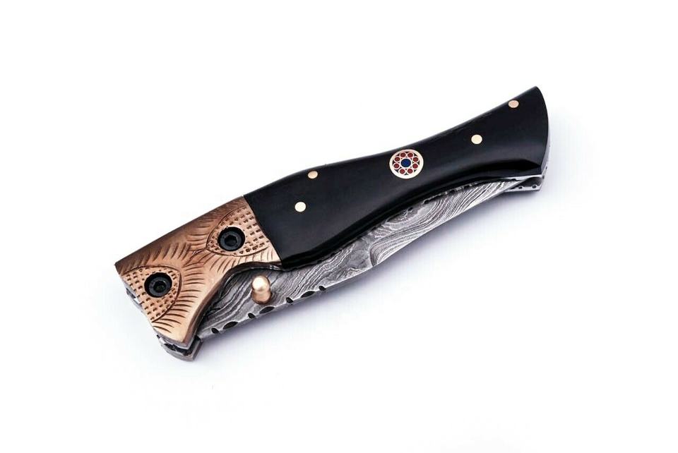 CUCHILLO PLEGABLE HERMOSO CUSTOM HECHO A MANO DE ACERO DE DAMASCO