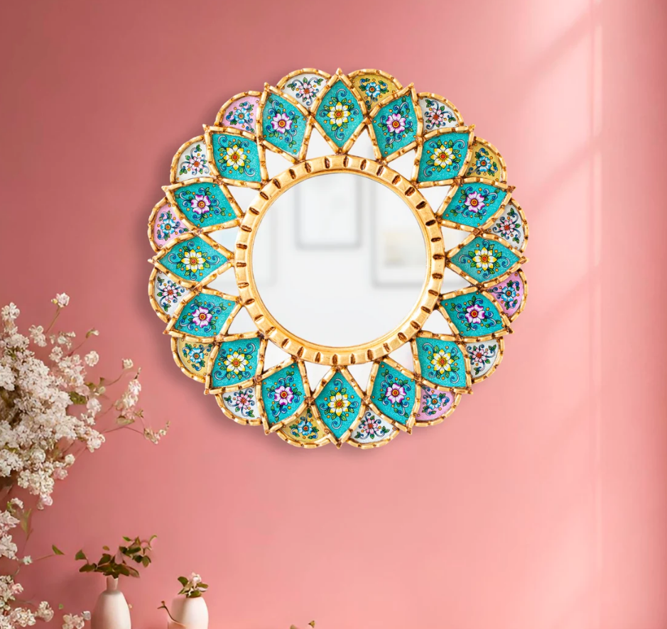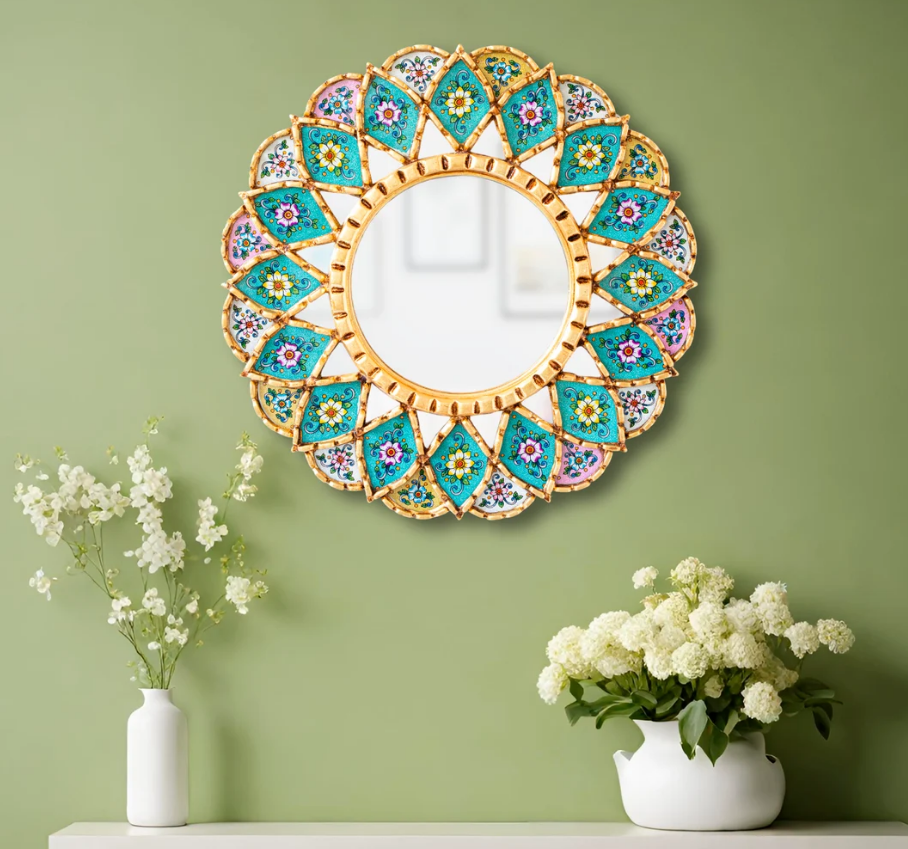 Espejo de Pared Redondo Decorativo Personalizado de 17.7 Pulgadas, Espejo Mandala Multicolor para Decoración de Pared, Estilo Veneciano Plateado