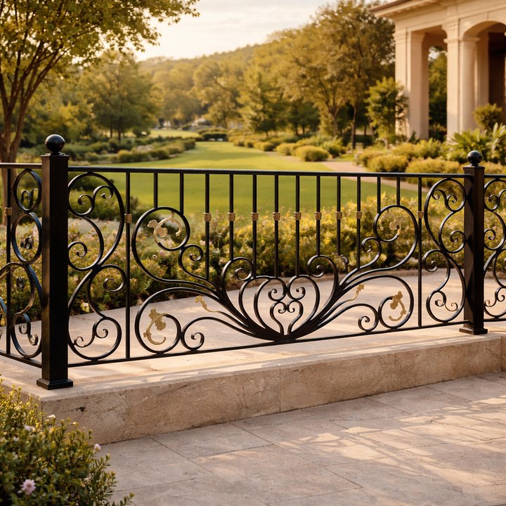 Barandilla de Balcón de Hierro Forjado Decorativa Personalizada para Hogares Modernos, Diseño de Barandilla de Balcón de Hierro Resistente al Óxido para Uso en Exteriores