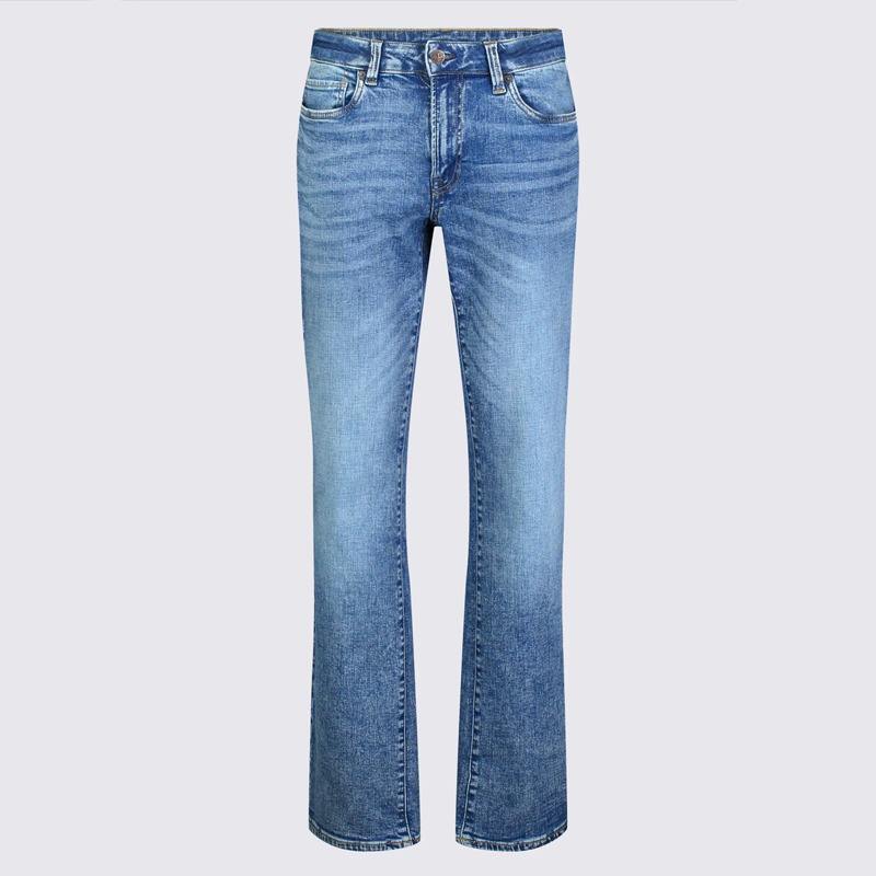 Pantalones vaqueros elásticos cómodos informales atléticos para hombre de color azul profundo personalizados estilo Vintage cintura media Fitness tejido recto