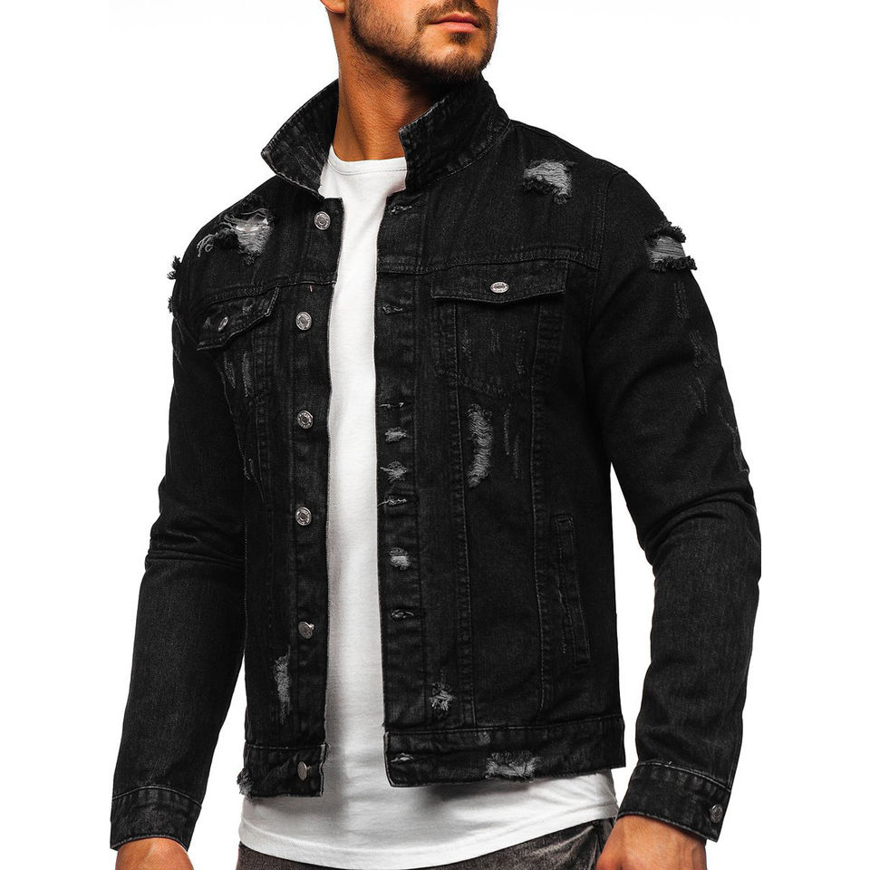 Chaqueta vaquera personalizada 2024 Costura en contraste Chaquetas vaqueras negras lavadas Vintage para hombre