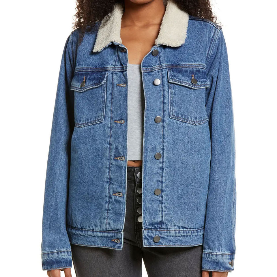 Chaqueta vaquera personalizada para mujer, cómoda, de manga larga, para invierno y otoño, servicio OEM, chaqueta vaquera de talla personalizada, venta al por mayor