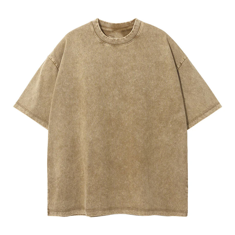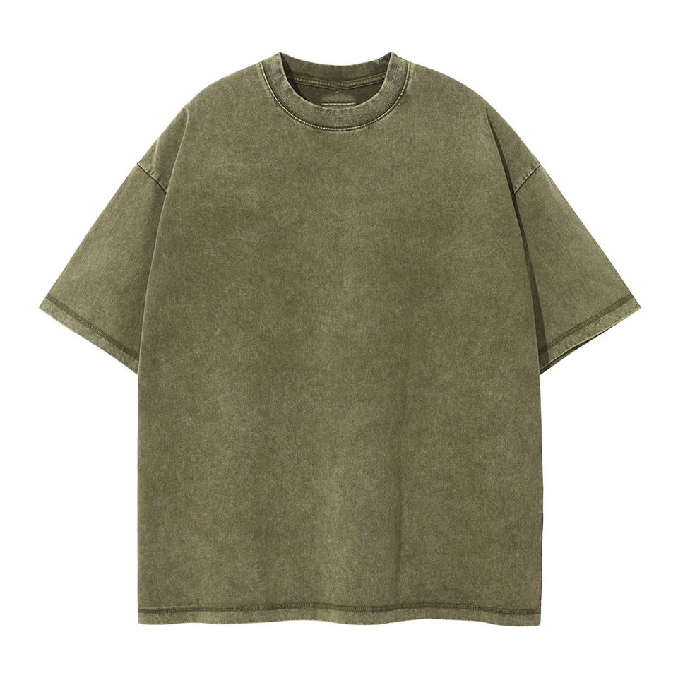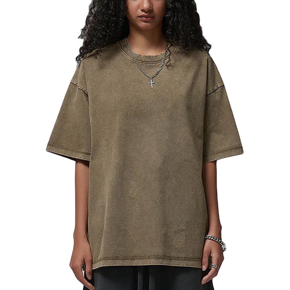 Camiseta de Diseño Personalizado 100% Algodón Peinado, Estilo Vintage, Oversize, Lavada, Batik, para Hombre, Unisex