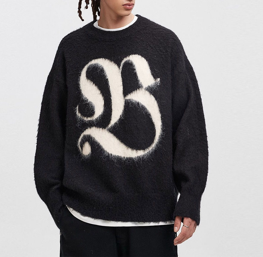 Suéter de Hombre de Diseño Personalizado, 100% Lana, Tejido Jacquard, Bordado Artesanal, Contraste de Color, Tendencia 2025, OEM