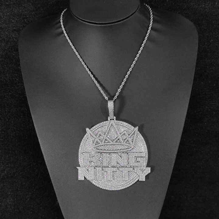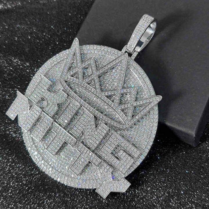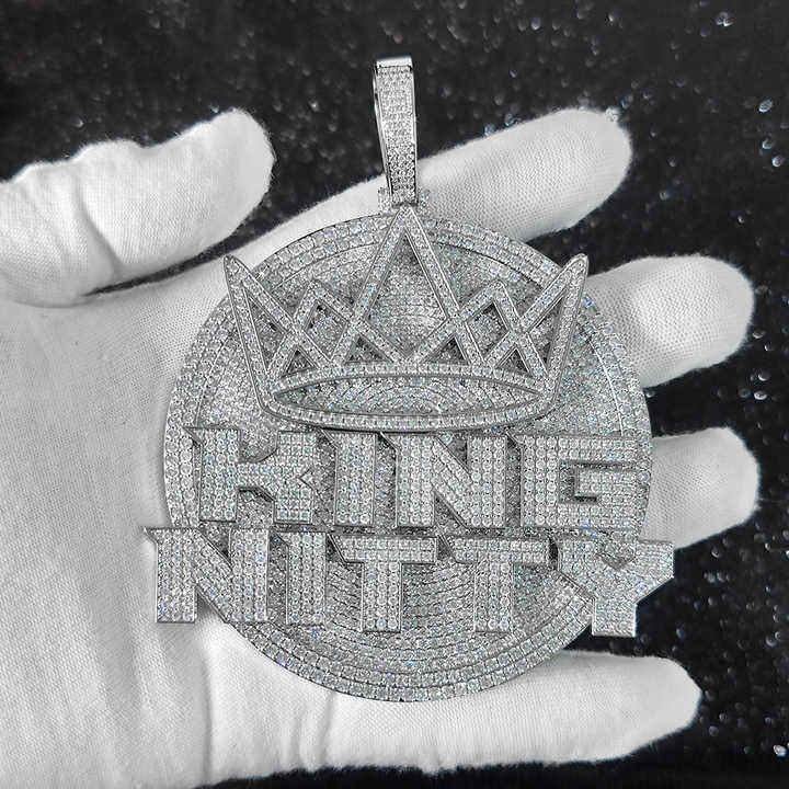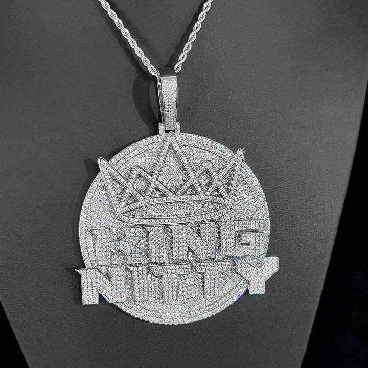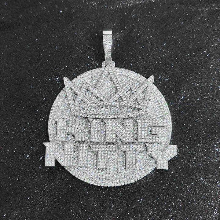Colgante de Lujo con Diseño Personalizado, Acabado en Plata 925, Corona Grande de Rey, con Diamantes de Moissanita Redondos, para Unisex