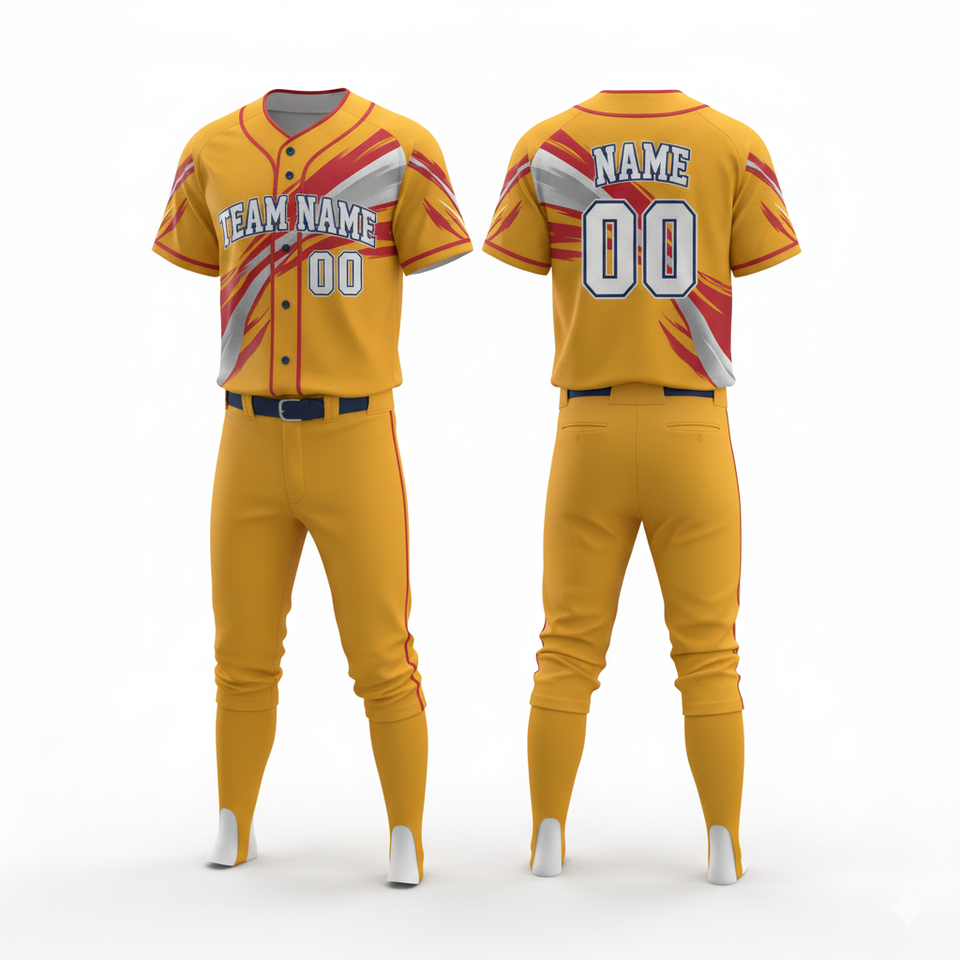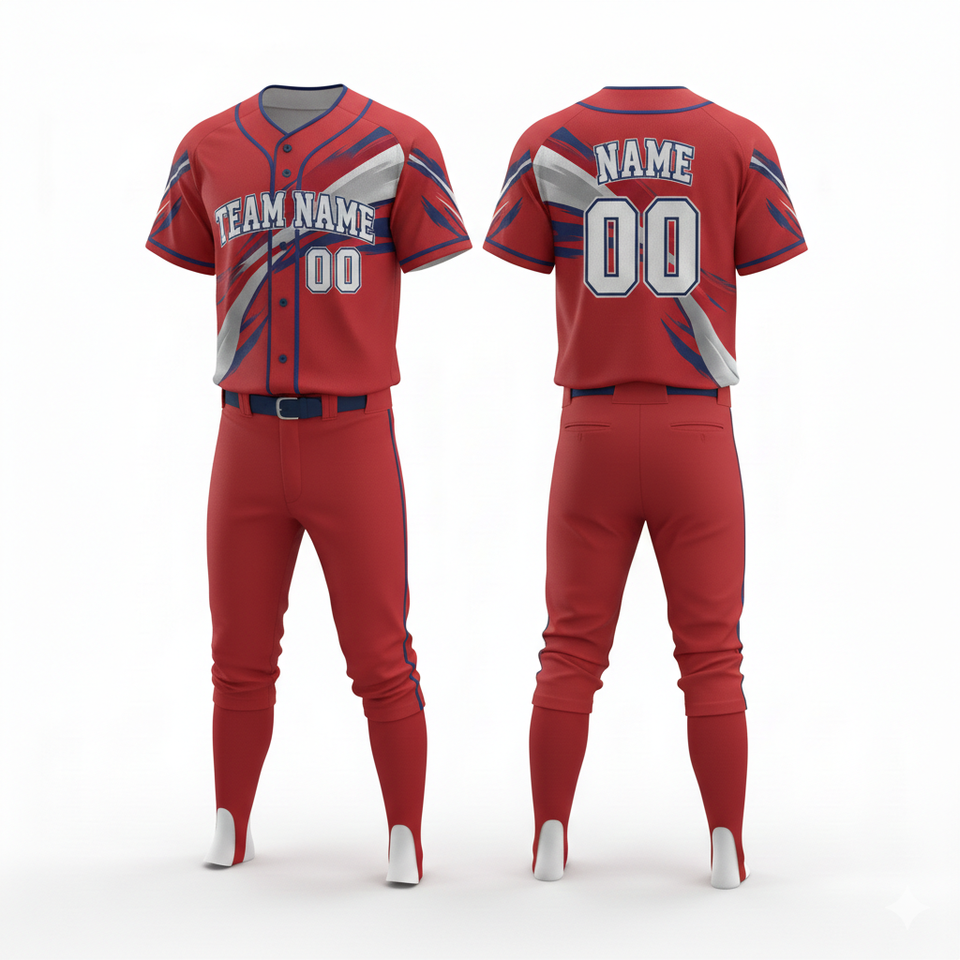 Conjunto de Uniforme de Béisbol de Diseño Personalizado, Jersey con Botones y Pantalones, 100% Poliéster, Secado Rápido, Transpirable, Nombres de Equipo Personalizados para Deportes de Equipo