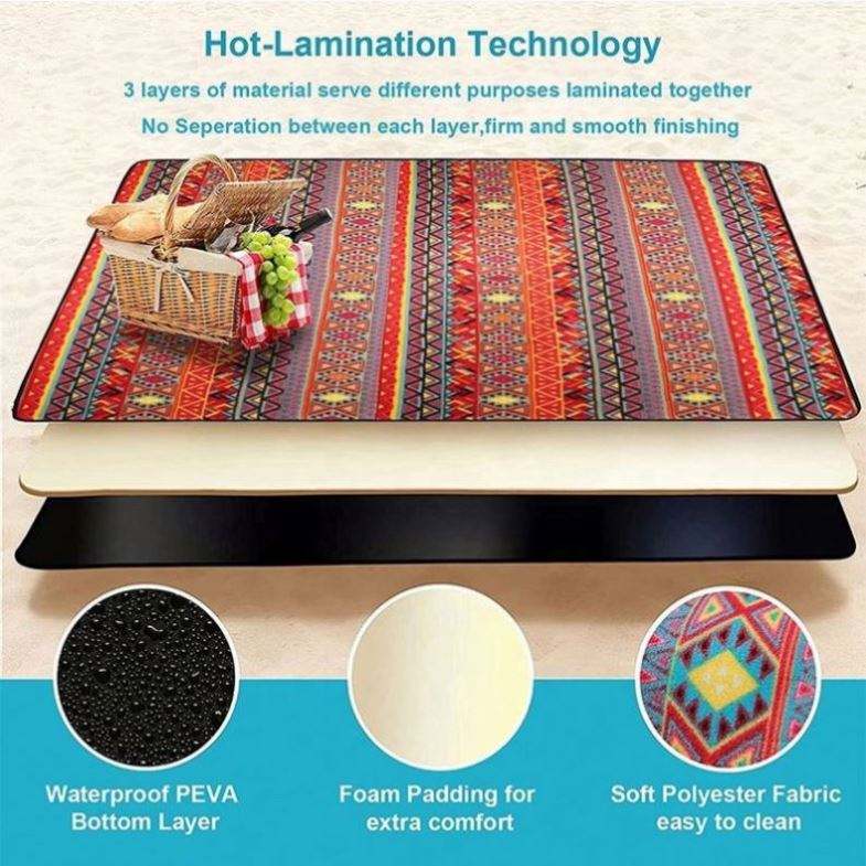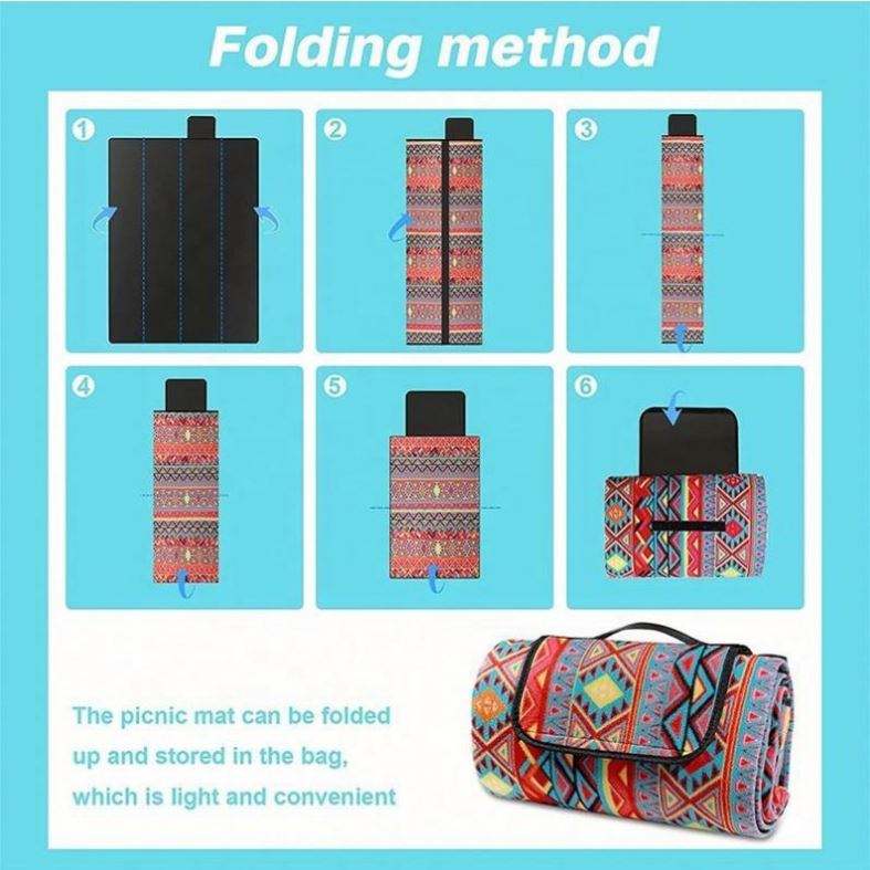 Alfombra de Picnic Plegable Impermeable de Poliéster y Algodón de Estilo Bohemio, Diseño Personalizado, para Acampar al Aire Libre, Playa o Jardín