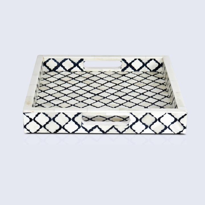 Bandeja Decorativa con Incrustaciones de Hueso de Diseño Personalizado para Interiores de Lujo