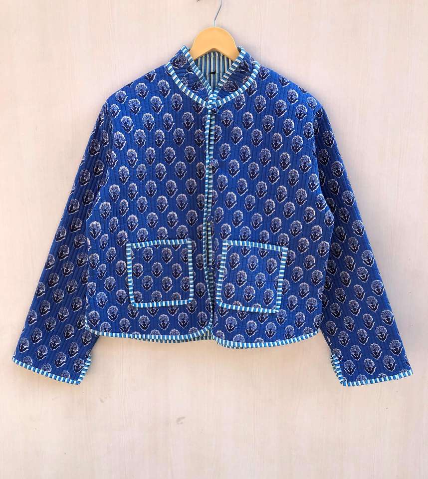 Chaqueta Acolchada Kantha Reversible Estilo Boho con Diseño Personalizado y Transpirable, Chaqueta de Algodón Vintage con Parches para Mujer