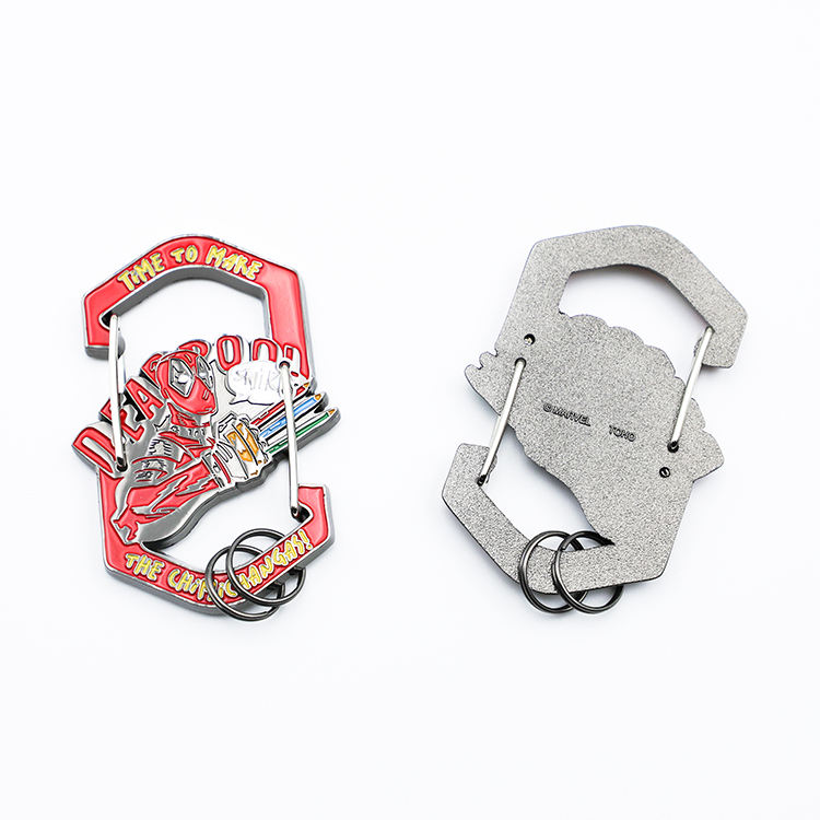 Mosquetón de diseño personalizado con grabado en relieve, esmaltado, en forma de S, de dibujos animados/anime, mosquetón de doble cara, llavero con mosquetón y anillas para llaves
