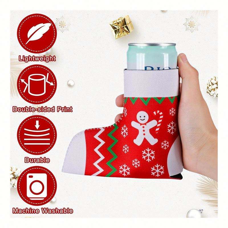 Enfriador de Latas de Cerveza de Neopreno con Diseño Personalizado de Navidad, Impresión a Todo Color, Forma de Bota, Sublimación, Estilo Vaquero